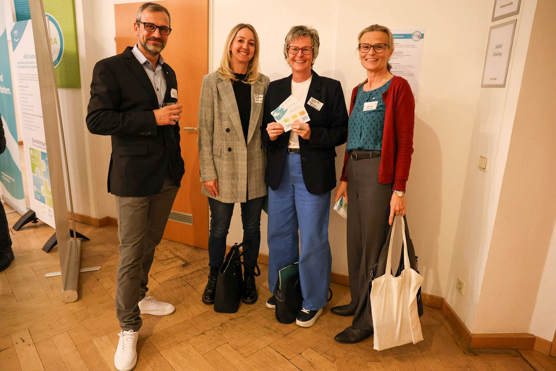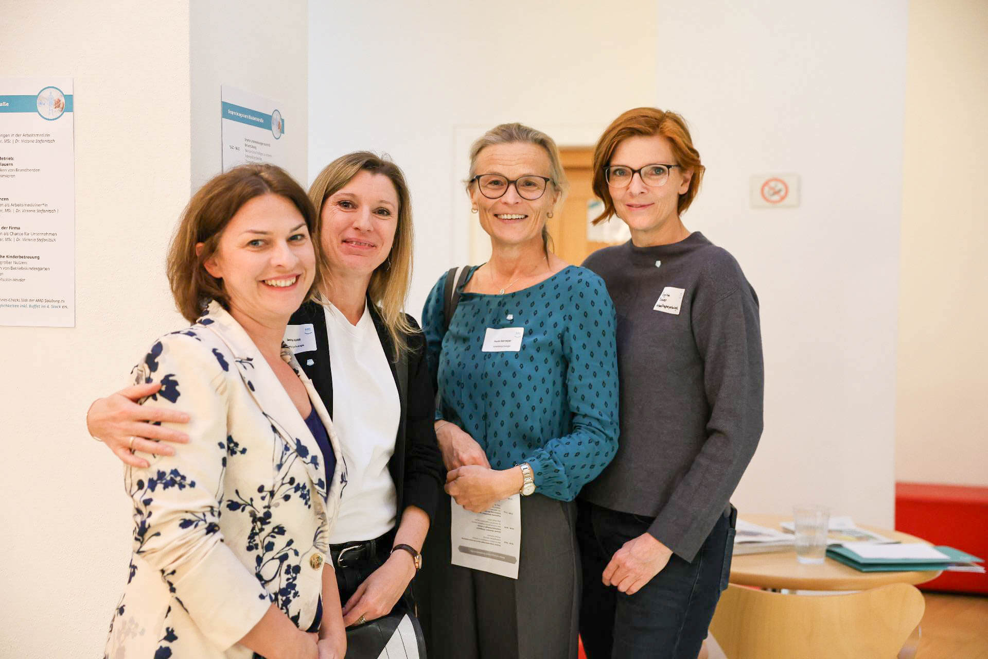 Die Mitarbeiter*innen des AMD Salzburg luden zum Netzwerken ein. Am Bild (v.l.n.r.): Sicherheitsfachkraft Ing. Natascha Kojadinovic und die Arbeitspsychologinnen Mag. Sandra Kröll, Mag. Paula Garneyer und Regina Bauer, MSc. Foto: AMD Salzburg