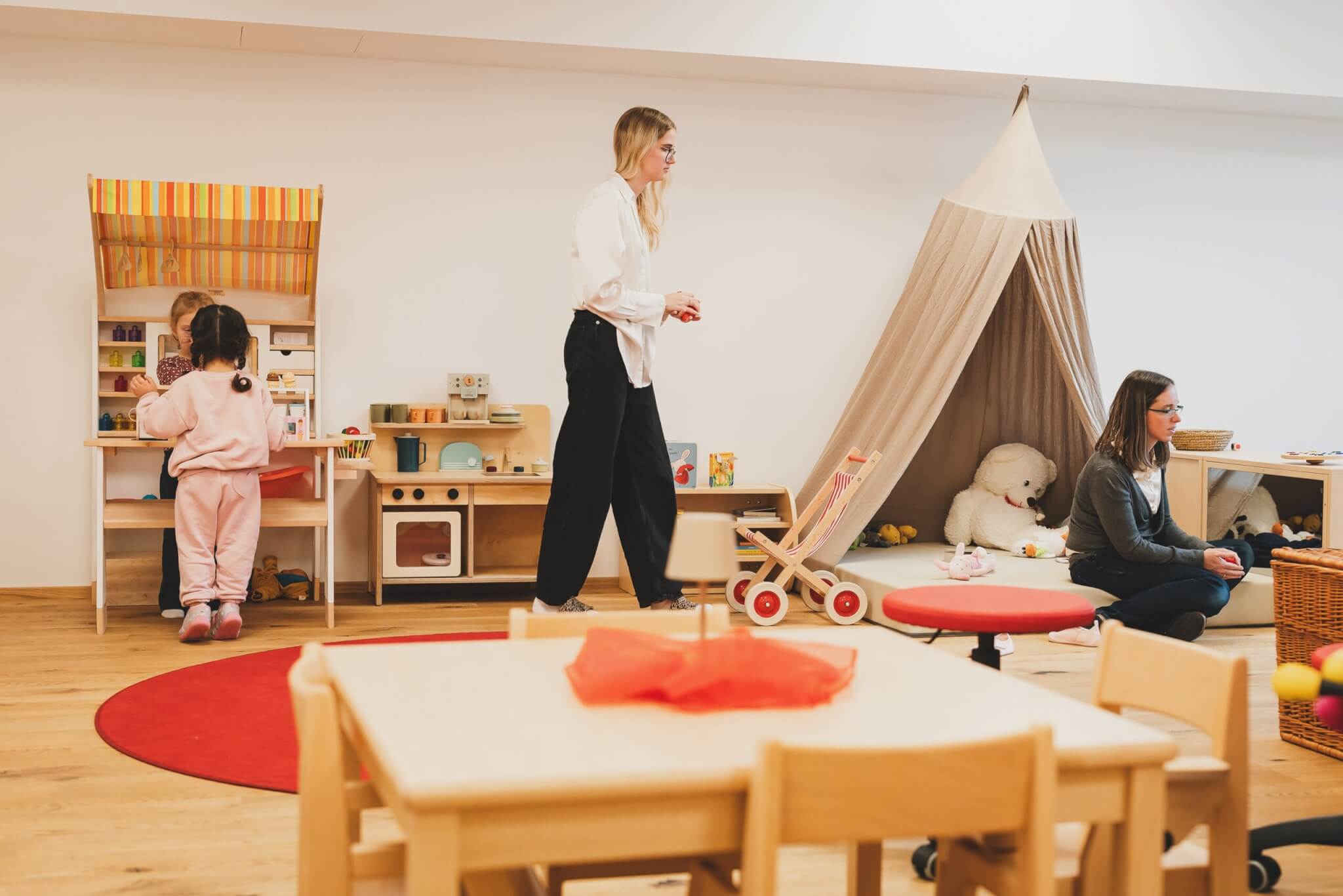 Der Betriebskindergarten punktet vor allem mit flexiblen Öffnungszeiten. Diese sind speziell auf die Tourismusbranche zugeschnitten: Montag bis Freitag von 7:30 bis 18:30 Uhr, bei Bedarf auch samstags und sonntags. Besonders familienfreundlich: Der Kindergarten ist ganzjährig geöffnet und schließt nur zwei Wochen zur Grundreinigung und Jahresplanung. Neben Firmenkooperationen sind auch private Anmeldungen für Kinder aus der Umgebung möglich – der Kindergarten erfüllt den Bildungsauftrag des Landes Salzburg und kann alle Kinder bis zur Schulpflicht betreuen.