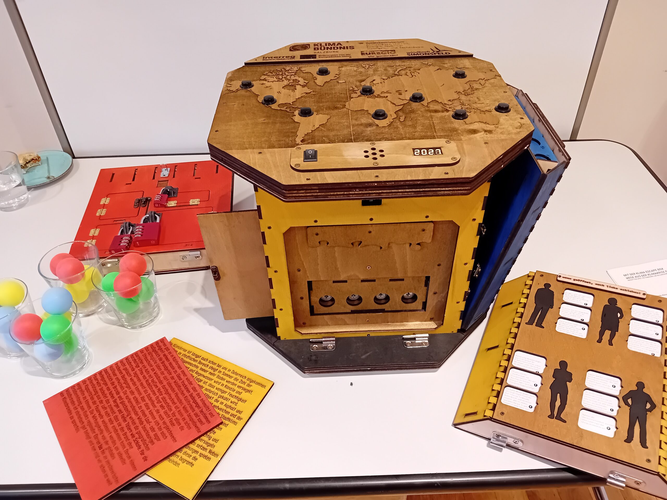 Die Uhr tickt. Und die Folgen der Klimakrise betreffen uns alle. Das Klimabündnis hat ein einzigartiges Spielerlebnis entwickelt: eine Klima-Escape-Box. Das Grundprinzip dabei: Die Spielenden müssen einen Weg aus der Klimakrise finden. Wie auch in der Realität warten knifflige Rätsel und Geheimfächer beim Finden von Lösungen. Klimawandelanpassung, Klimagerechtigkeit und Klima-Kommunikation werden auf neue Art greifbar.