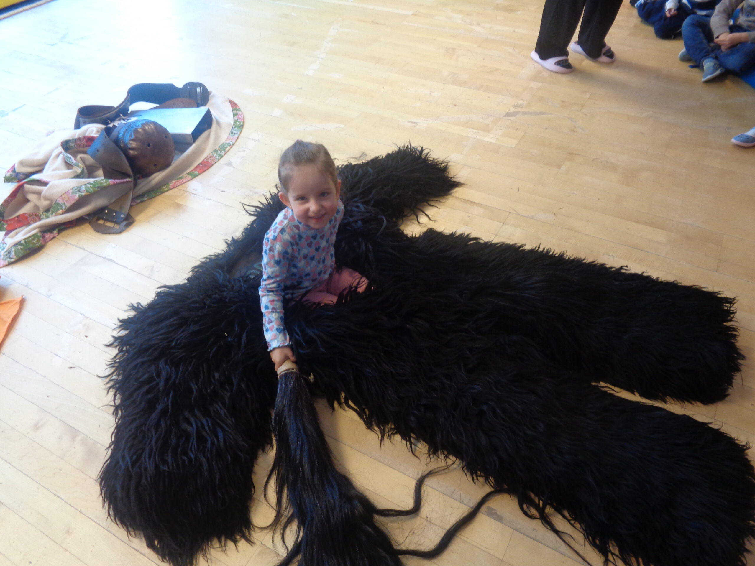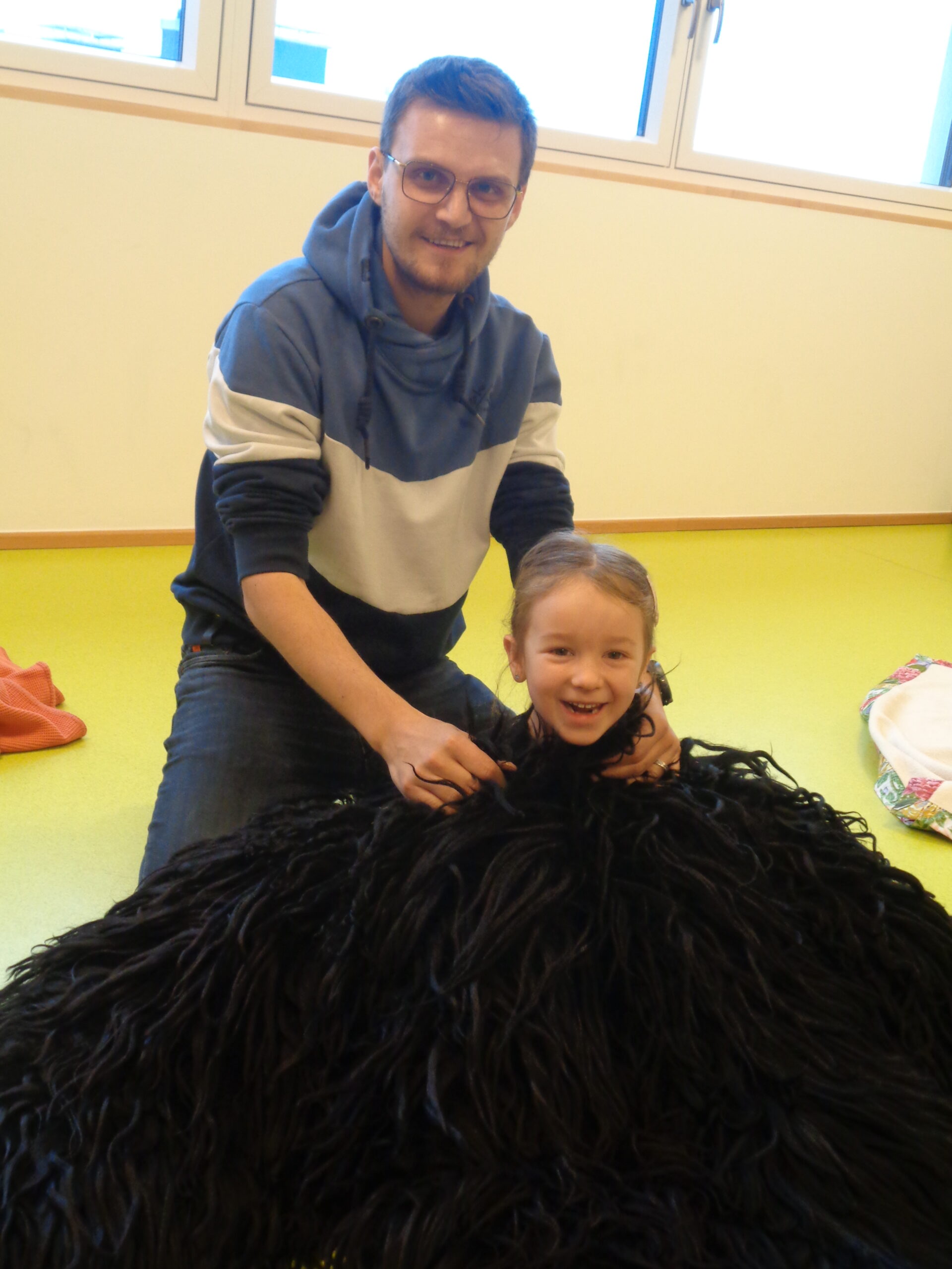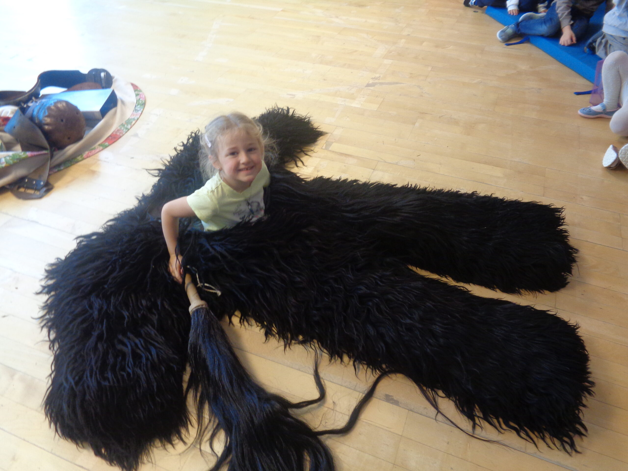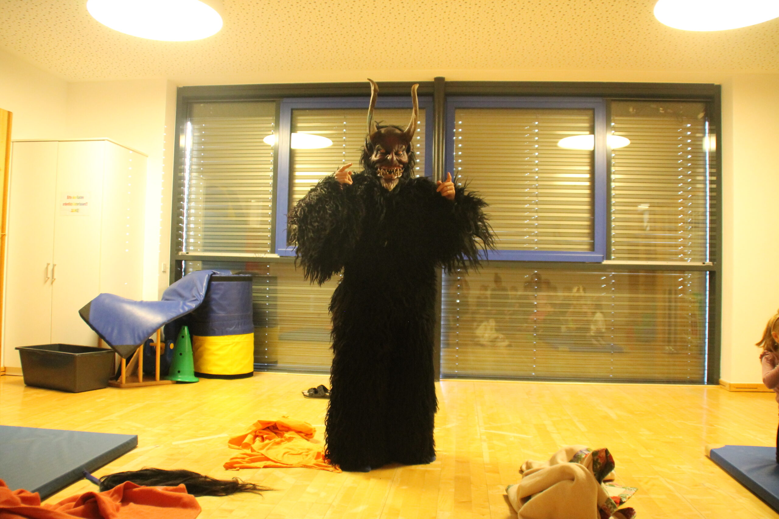 Um ihnen die Angst zu nehmen, wurden verschiedene Krampusutensilien vorgestellt und in einem geschützten Rahmen ausprobiert. Die Kinder konnten die Maske, Felle, Glocken und auch die Rute aus nächster Nähe ansehen, anfassen und damit experimentieren. Dabei wurde kindgerecht erklärt, dass der Krampus ein kultureller Bestandteil unserer Region ist und dass hinter jeder Maske ein ganz normaler Mensch steckt.