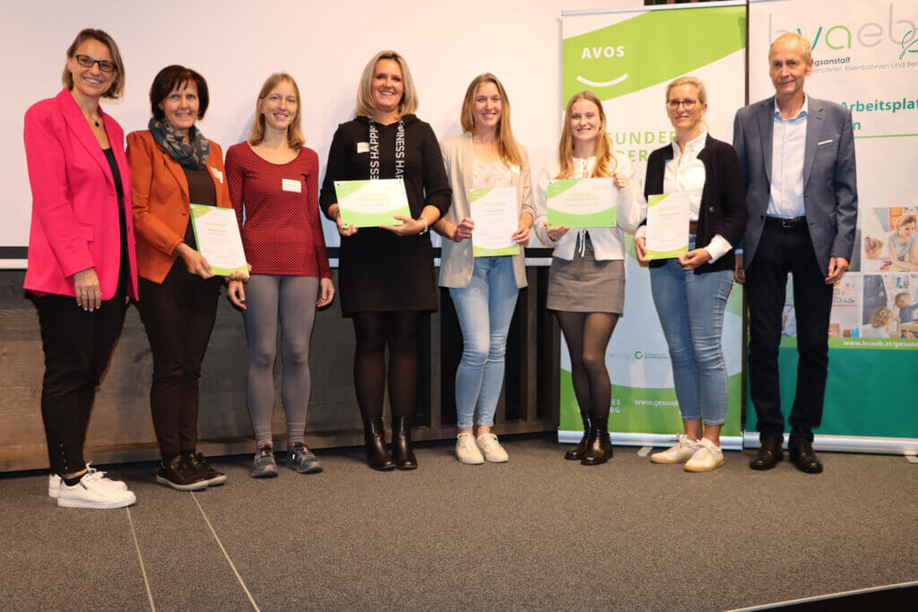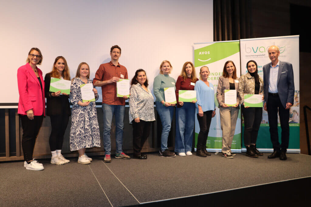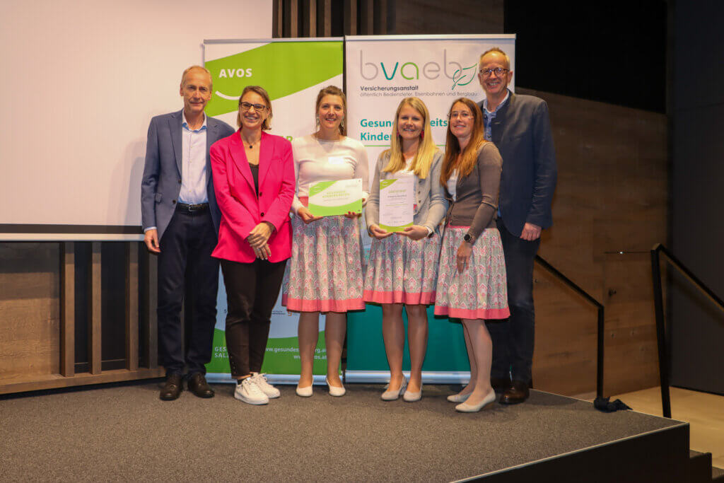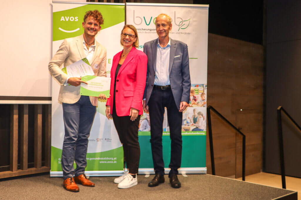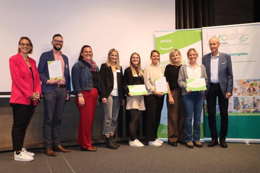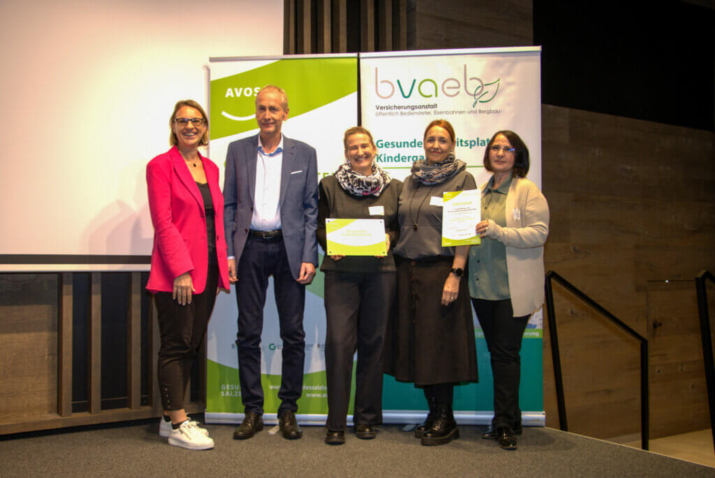Im feierlichen Rahmen wurden im Anschluss 36 Bildungseinrichtungen aus Stadt und Land Salzburg mit dem Zertifikat „Gesunder Kindergarten“ ausgezeichnet. Während sechs Kindergärten (Kinderbildungs- und -betreuungseinrichtung Kendlerstraße, Pfarrkindergarten St. Vitalis, Kindergarten Aigen, KinderVilla Derra de Moroda, Gemeindekindergarten Großarl, Kindergarten Oberweißburg) erstmals zertifiziert wurden, erhielten 30 weitere Kindergärten eine Rezertifizierung. Die Zertifikate wurden von den Ehrengästen überreicht: AVOS-Präsident MR Dr. Holger Förster, AVOS-Geschäftsführerin Mag.a Angelika Bukovski, MIM, MBA und BVAEB-Direktor Dr. Vinzenz Huber.