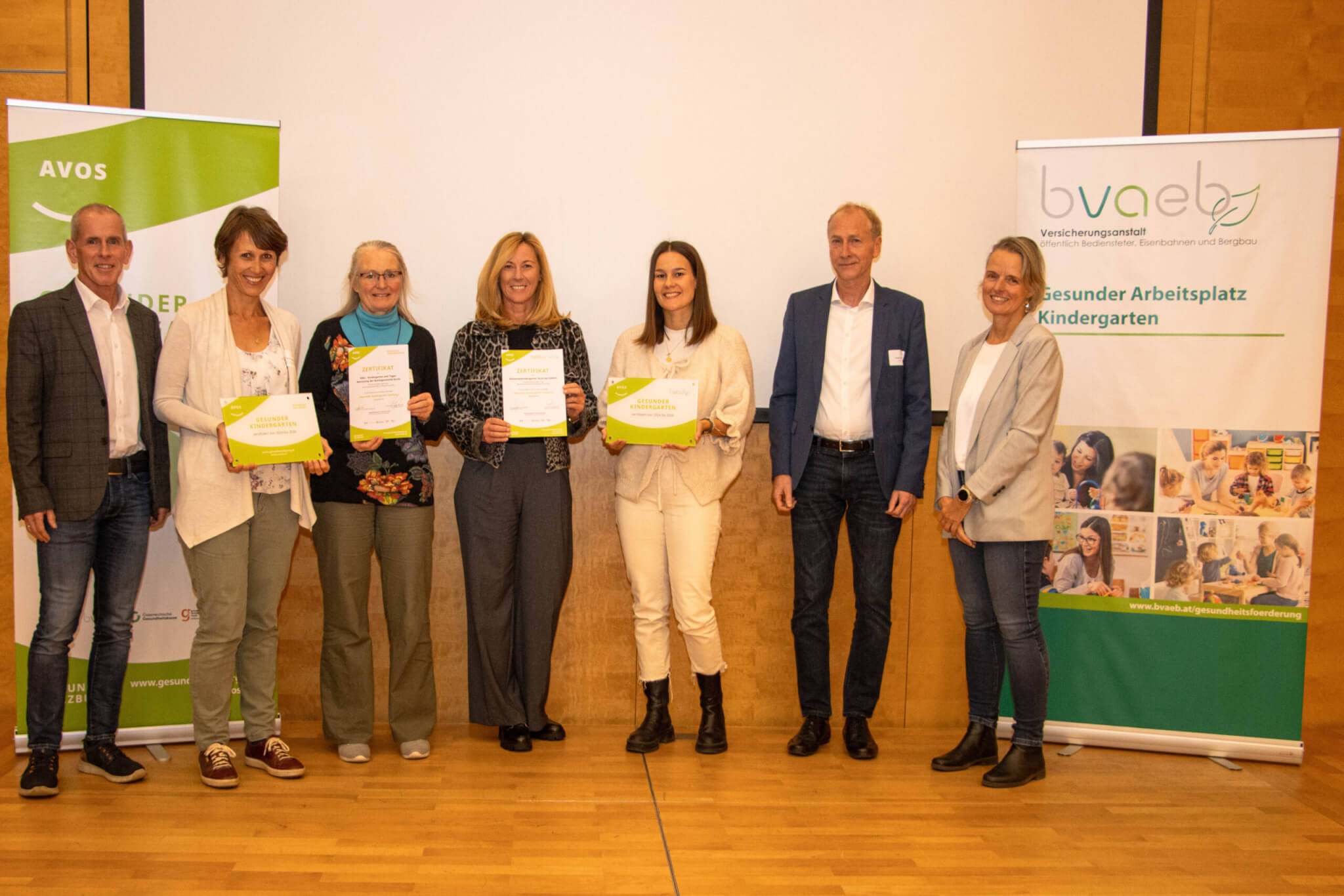 Die Initiative „Gesunder Kindergarten“, die AVOS in Kooperation mit der BVAEB für den Gesundheitsförderungsfonds Salzburg umsetzt, zielt darauf ab, das Thema Gesundheitsförderung nachhaltig in Salzburgs Kindergärten zu verankern. Sie basiert auf den fünf Säulen Ernährung, Bewegung, Lebenskompetenz, Umwelt & Sicherheit und Teamgesundheit. Durch Workshops, Beratungen und Informationsveranstaltungen werden Kindergärten auf ihrem Weg zur zertifizierten gesundheitsfördernden Einrichtung unterstützt. Das Zertifikat gilt jeweils für zwei Jahre und kann bei Erfüllung der Anforderungen beliebig oft verlängert werden.