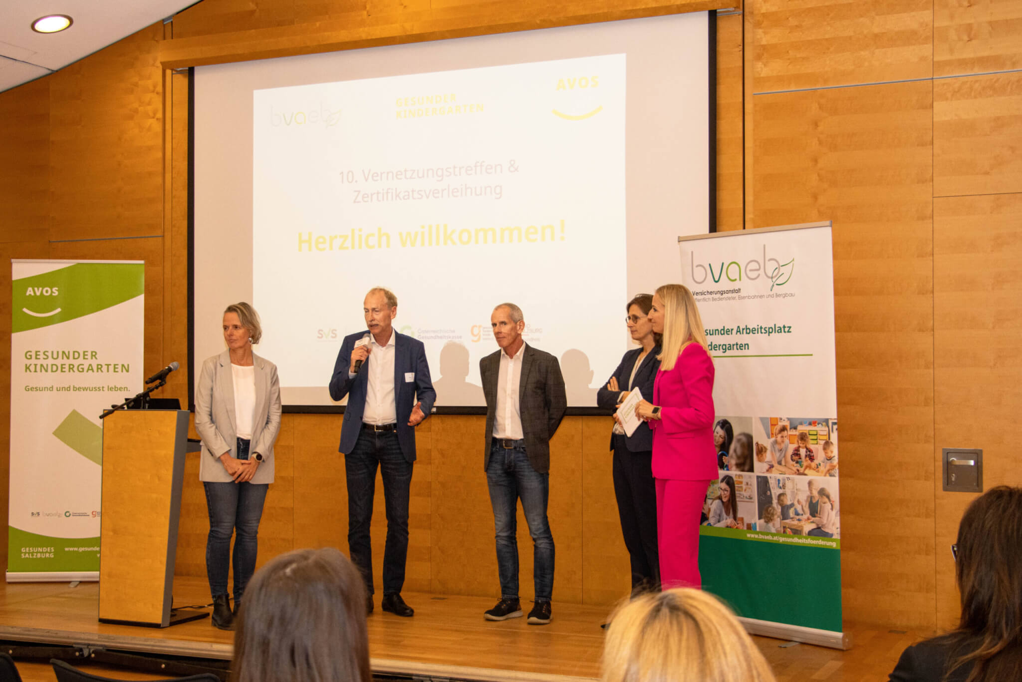 Im Anschluss an den Vortrag folgte die Zertifikatsverleihung, bei der sieben Kindergärten erstmals zertifiziert und 31 Kindergärten rezertifiziert wurden. AVOS-Gesundheitsreferentin Christina Frei, BSc, die gemeinsam mit Katharina Schweller und Andrea Gius die Veranstaltung organisierte, freute sich über mehr als 100 Teilnehmende – und darüber, dass gleich mehrere Kindergärten die Gesundheitsförderung seit dem Start der Initiative 2010 „leben“. Gleich mehrere Kinderbildungseinrichtungen sind zudem in Anif bereits das fünfte Mal rezertifiziert worden und einige davon „leben“ die Gesundheitsförderung bereits seit Beginn der Initiative im Jahr 2010 kontinuierlich.