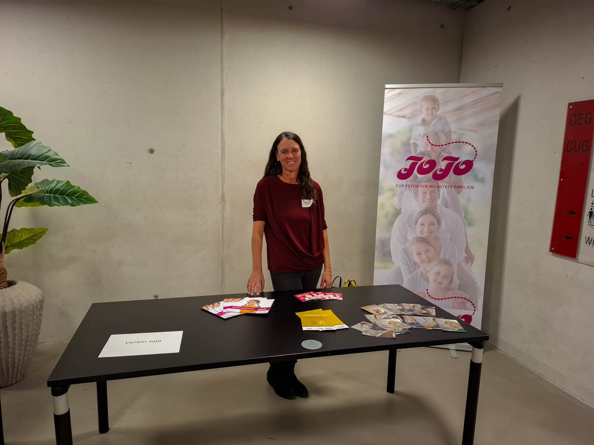 Der „Bazar der Resilienz“ bot vielfältige Wissensangebote zum Thema psychische Gesundheit. Am Bild: AVOS-Gesundheitsreferentin Mag. Sylvia Schweighofer am Infostand von AVOS. Foto: AVOS
