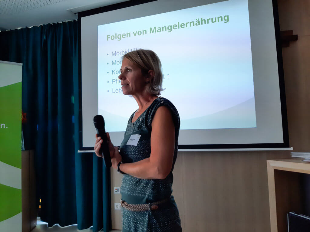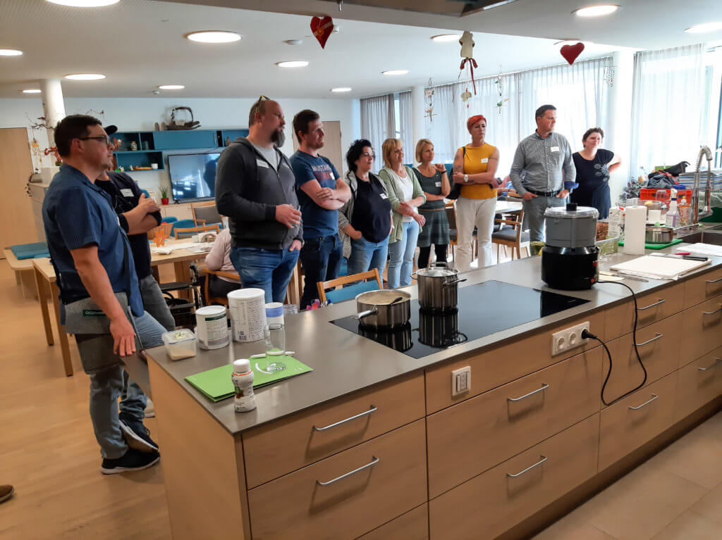 Mit dem Seniorenwohnhaus „Hoamat Achfeld“ als Gastgeber ist heuer das Vernetzungstreffen der Gesunden Küchen unter dem Motto „(K)ein Einheitsbrei?“ für Mitarbeiter*innen aus Salzburgs Seniorenwohnheimen in Golling über die Bühne gegangen. Insgesamt rund 25 Teilnehmer*innen aus Küche und Pflege waren mit dabei. „Vor allem der Fachvortrag zum Thema Breikost von Diätologin Margret Wöhrer ist dabei sehr gut angekommen“, erzählt AVOS-Gesundheitsreferentin Cornelia Seitlinger-Schreder, BEd, MSc, Ansprechpartnerin für das Projekt „Gesunde Küche“, einem Programm vom Land Salzburg, bei dem AVOS als Umsetzer agiert.