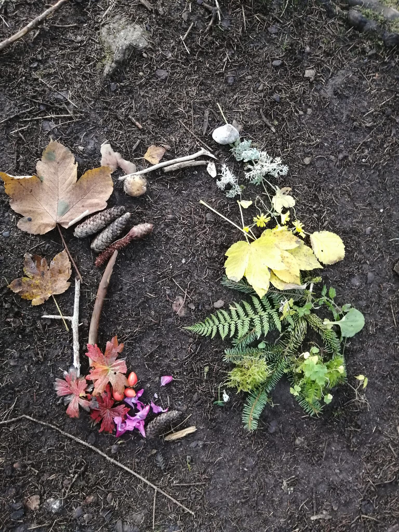 Mit offenen Augen und neugierigem Blick sammelten die Kinder Blätter, Zapfen, Äste und andere Naturschätze und staunten über die Vielfalt der Farben. Dabei wurde auch darüber gesprochen, welche Farben sich warm und welche sich eher kühl anfühlen – und wie unterschiedlich sie auf uns wirken..