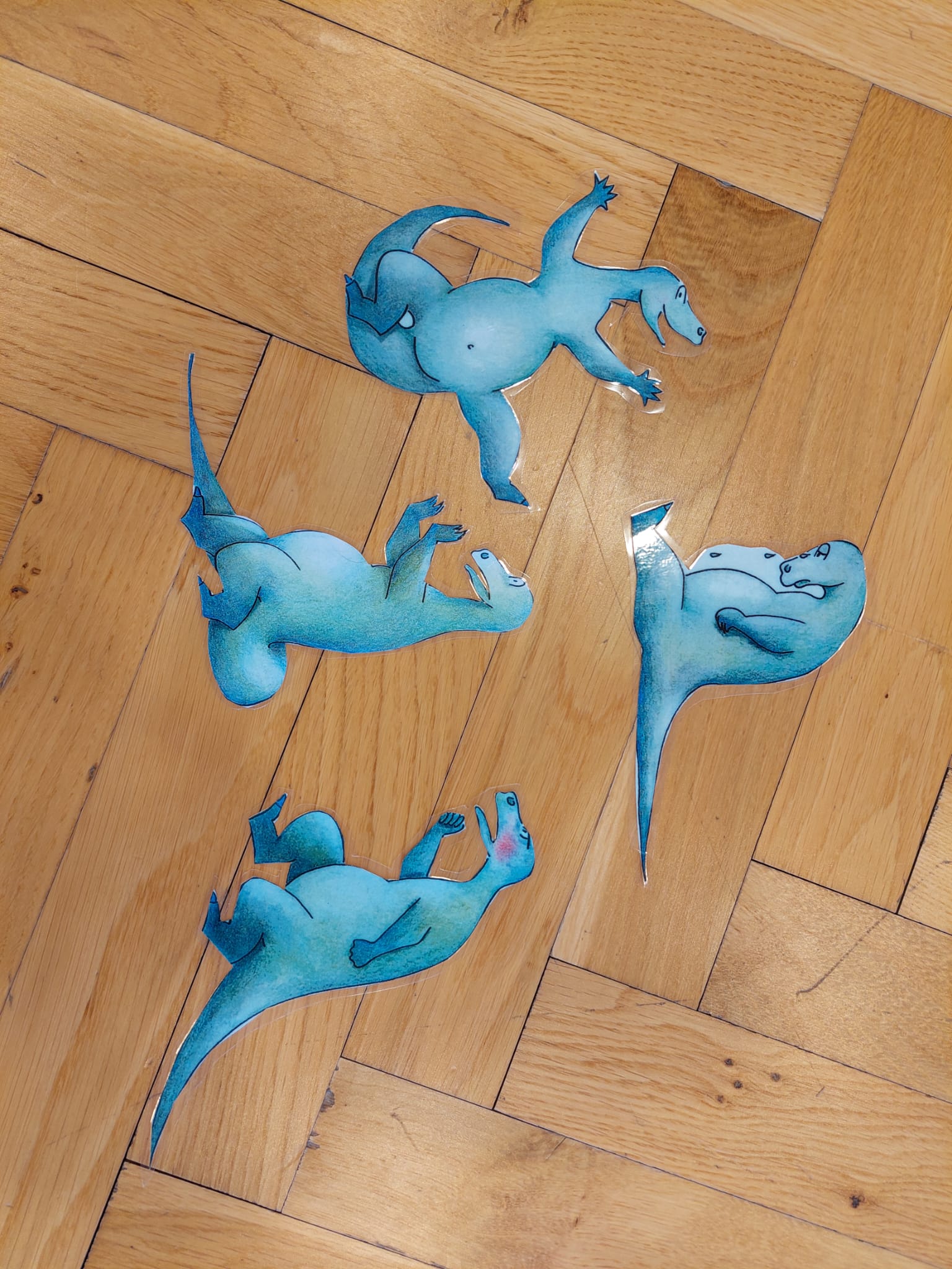 Anschließend tauchten wir ins Dino-Land ein, wo wir gemeinsam die versteckten Dinos mit ihren Gefühlslagen besprachen und sie auch mit Gesten nachahmten: Wir stampften wütend wie ein Dino, schmollten traurig wie ein Dino und hüpften vergnügt wie ein fröhlicher Dinosaurier.