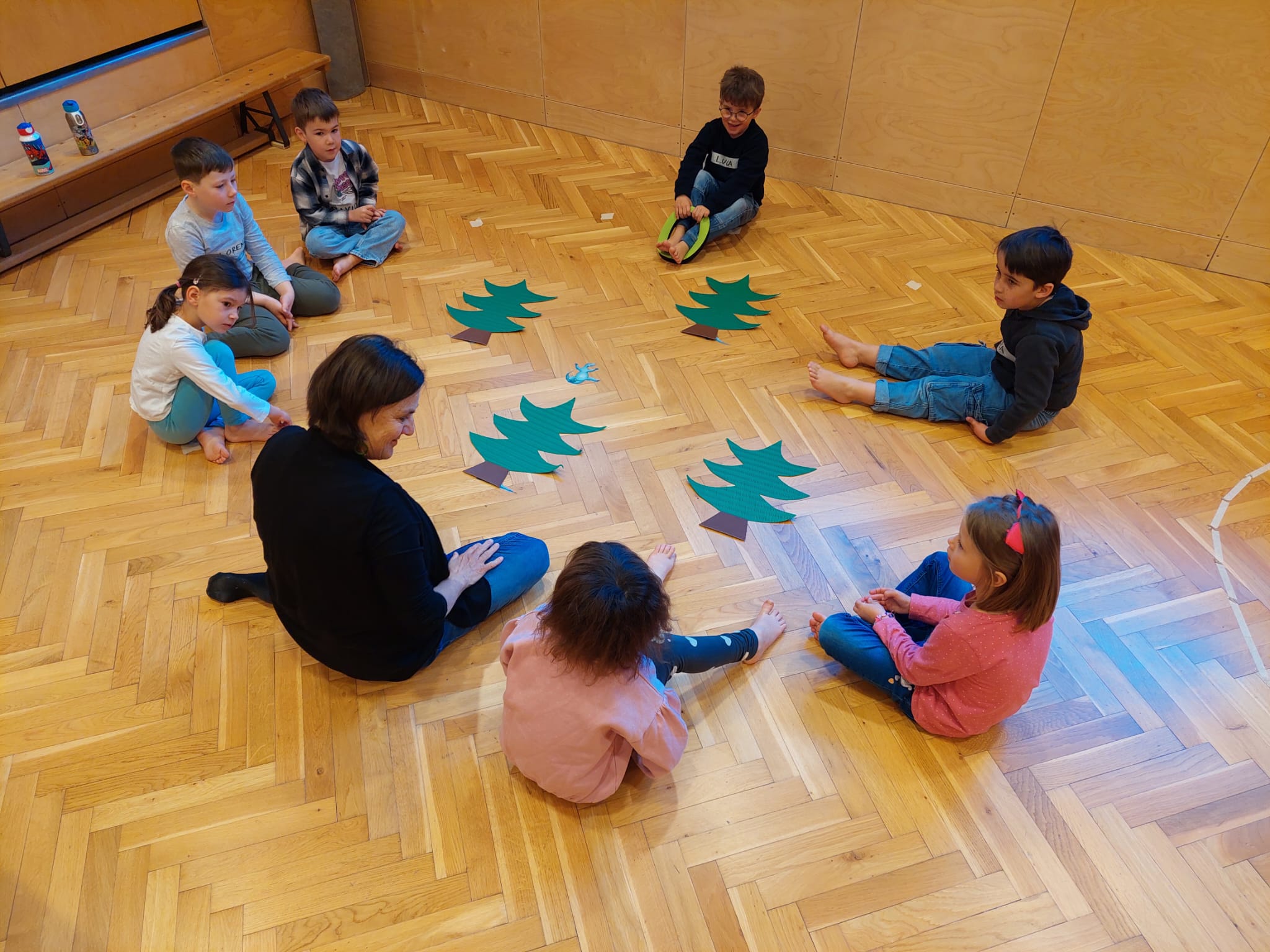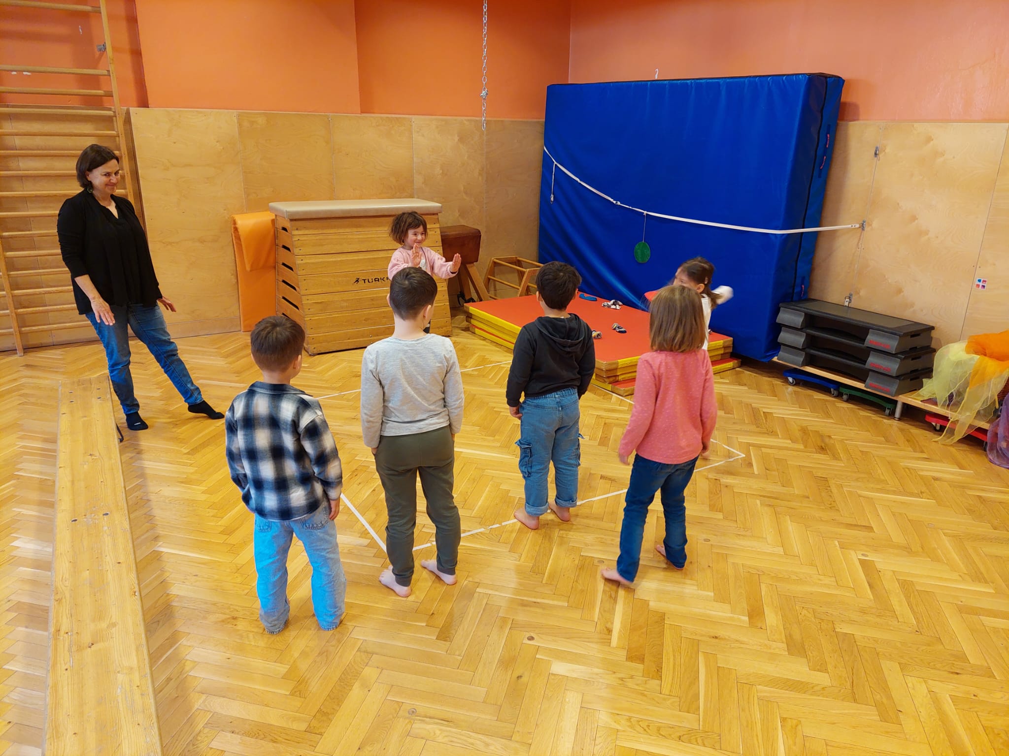 Danach lernten wir das Dino-Spiel „Sport ohne Wort“ kennen, wo ein Kind nur mit Handgesten zeigte, wie sich alle anderen bewegen durften. Es musste also auch gut auf die jeweilige Körpersprache des vorderen Kindes geachtet werden.