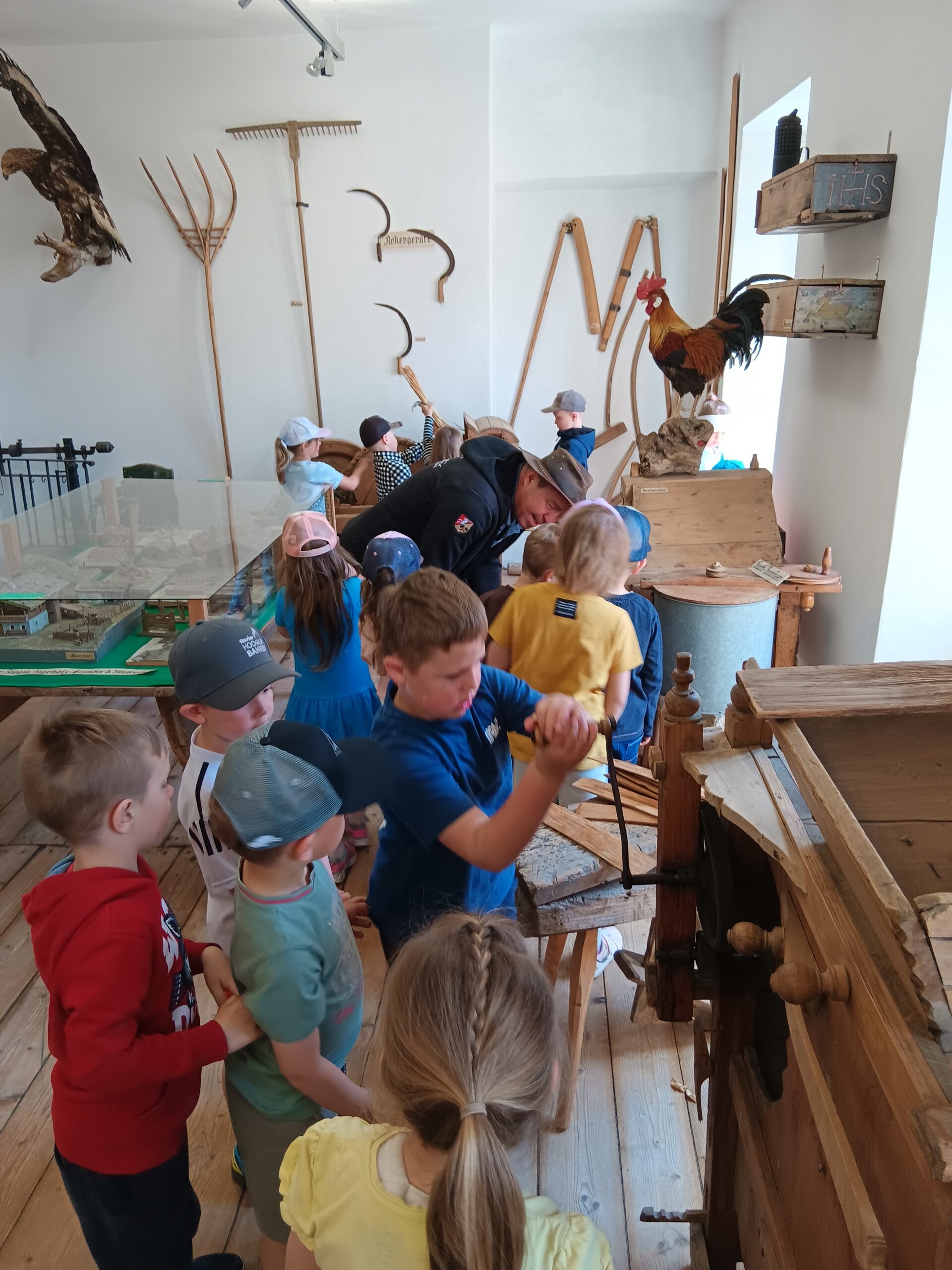 Die Schulanfänger wurden zu einem Besuch in unser Talmuseum eingeladen. Man konnte sich die glitzernen Kristalle und Steine aus dem Raurisertal anschauen. Sehr interessant fanden sie das Sonnblickobservatorium, dass in klein ausgestellt ist. Auch der Brauchtum kam nicht zu kurz, man konnte den Krampus und Nikolaus, sowie die Schnabelpercht bestaunen. Das Highlight war der Wolf, den man in Rauris geschossen hatte.