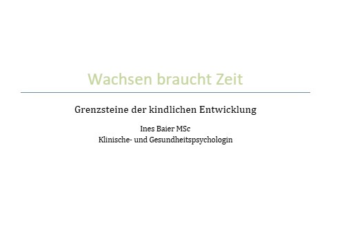 Ines Baier Msc, Klinische- und Gesundheitspsychologin, führte uns durch den Abend und erklärte zunächst den Unterschied zwischen „Meilensteine“ und „Grenzsteine“ in der Entwicklung. In den verschiedenen Bereichen der Entwicklung (unter anderem emotionale/soziale Entwicklung, Sprache und Kommunikation, Bewegung und Motorik, Kognition, etc.) erläuterte sie uns anhand sehr anschaulicher Beispiele die „Grenzsteine“ in den Altersstufen von 3-6 Jahren. Weiterhin wurden den Eltern Ideen zur Förderung ihrer Kinder gegeben. Außerdem wurden wichtige Anlaufstellen und Adressen für Eltern besprochen, wenn es dann doch nötig ist, genauer hinzuschauen.