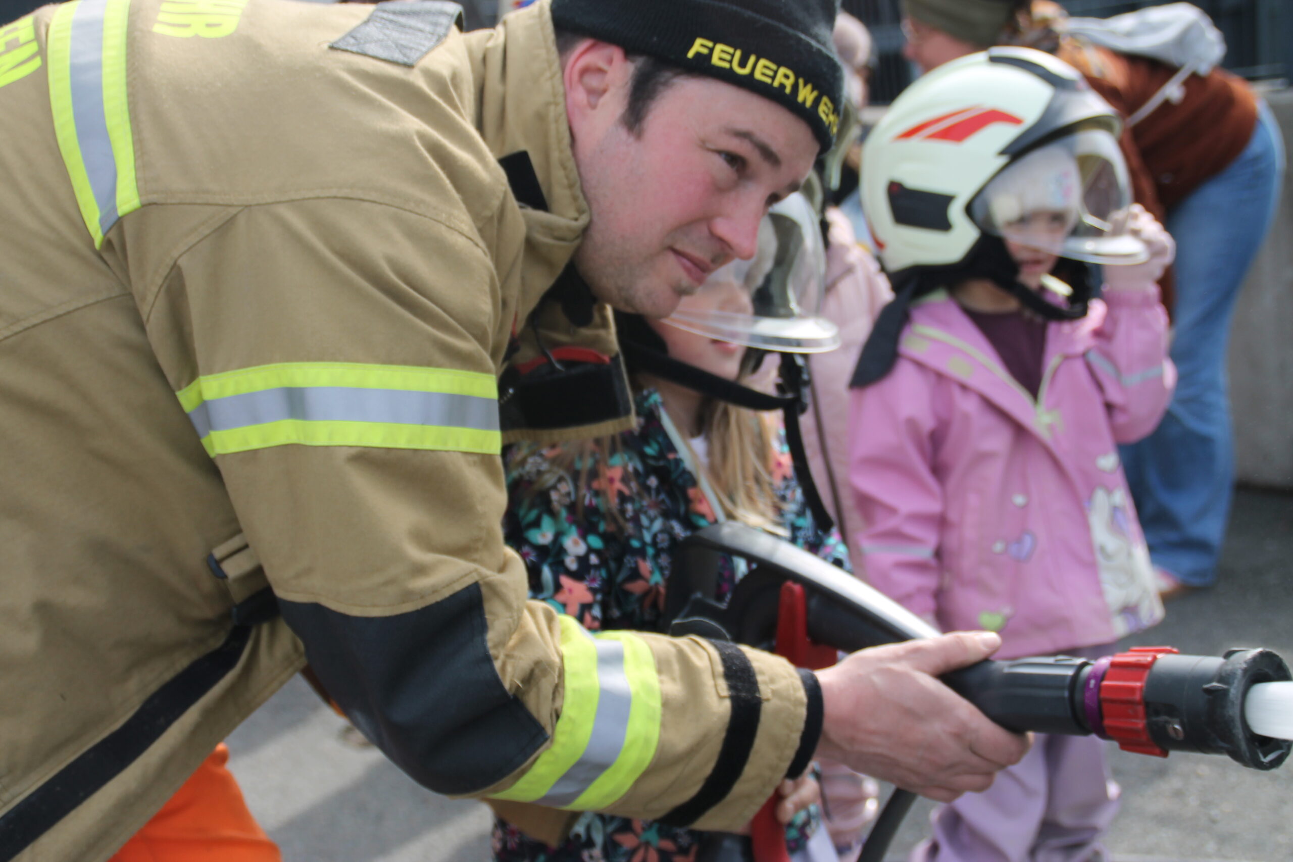 Vor Ort gab es jede Menge zu entdecken. Die Kinder konnten die gesamte Feuerwehr genau besichtigen – von den großen Einsatzfahrzeugen bis hin zur spannenden Ausrüstung. Besonders viel Spaß machte es, selbst aktiv zu werden: Mit dem Feuerwehrschlauch spritzen zu dürfen, war für viele das absolute Highlight!