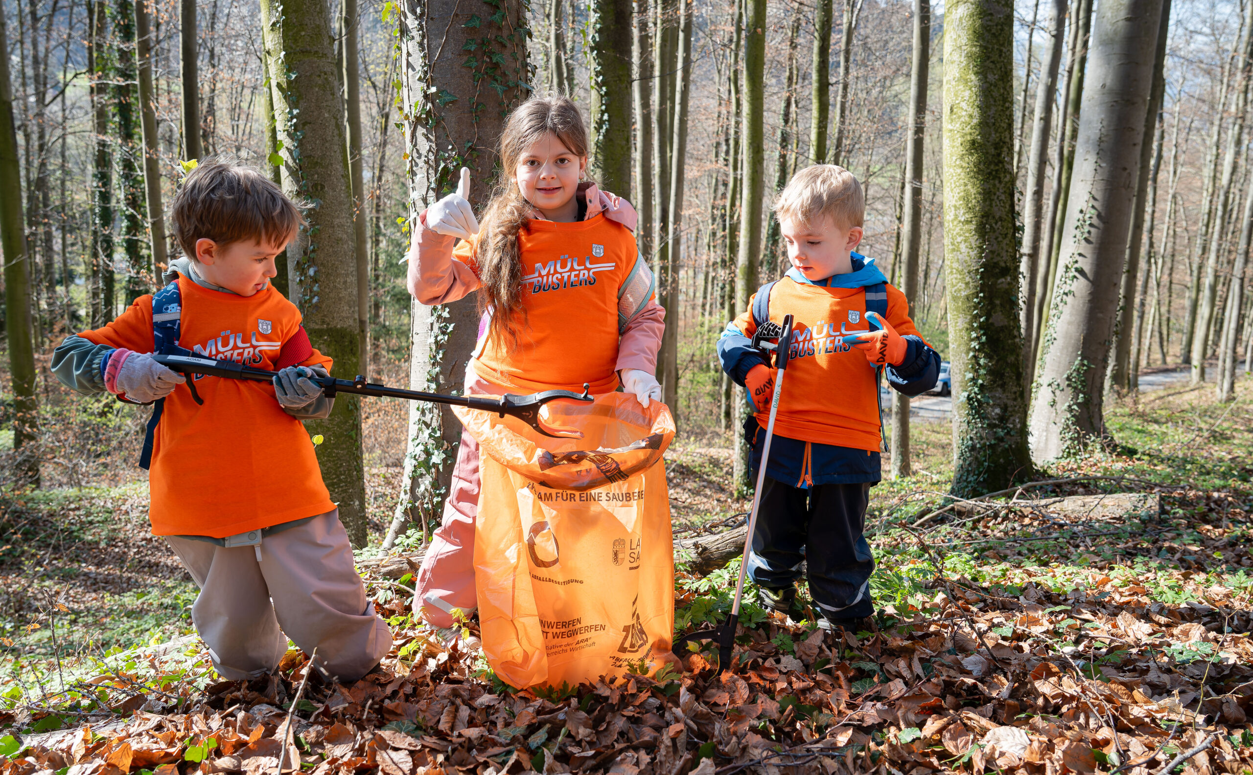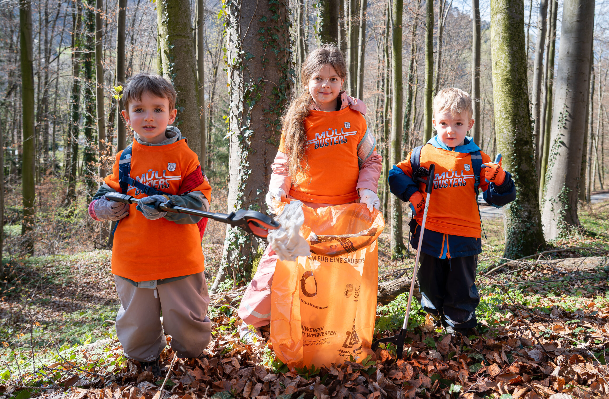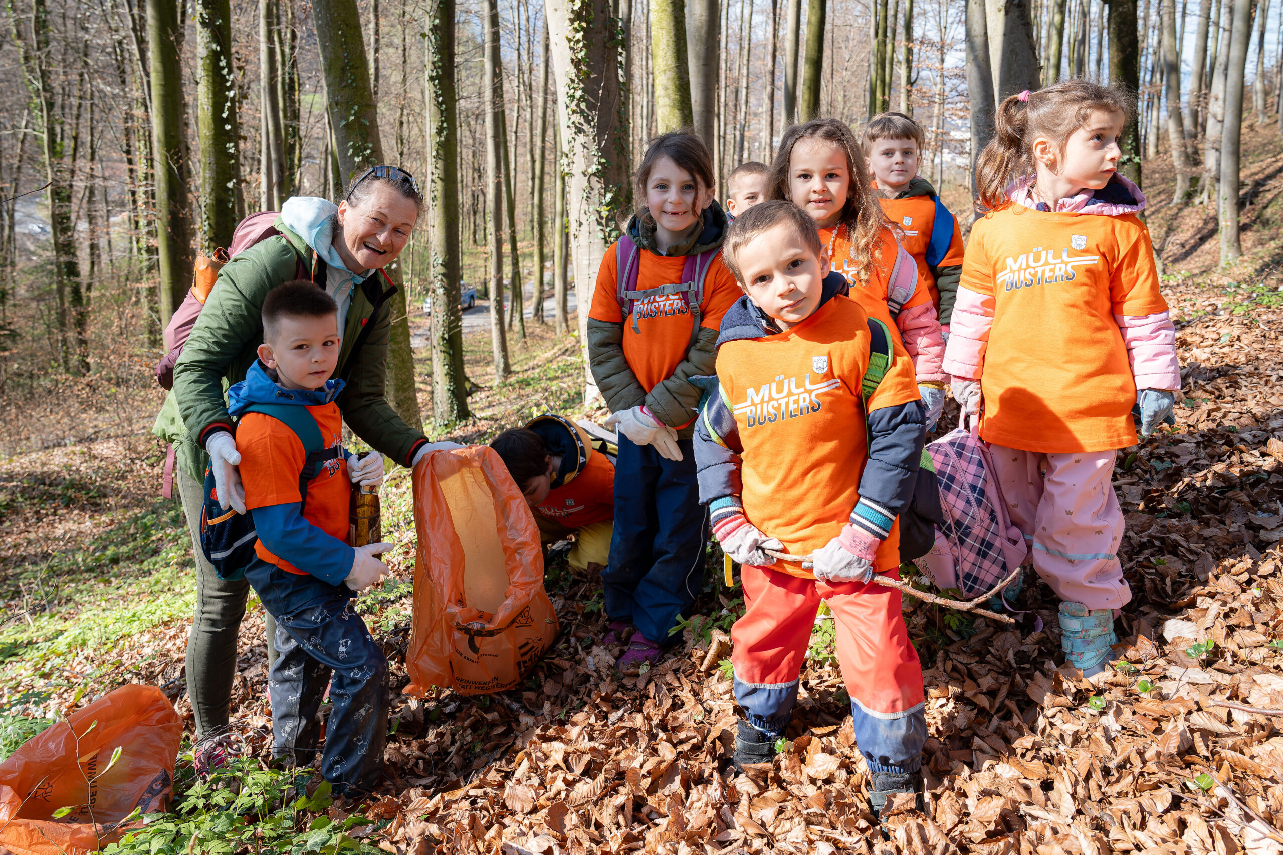 Mit orangen Müllbuster T-Shirts, Greifzangen, Handschuhen und Müllsäcken bewaffnet wurde nach wöchentlichen Erkundungstouren durch unsere Umgebung der Heuberg auserkoren, um vom Müll befreit zu werden.