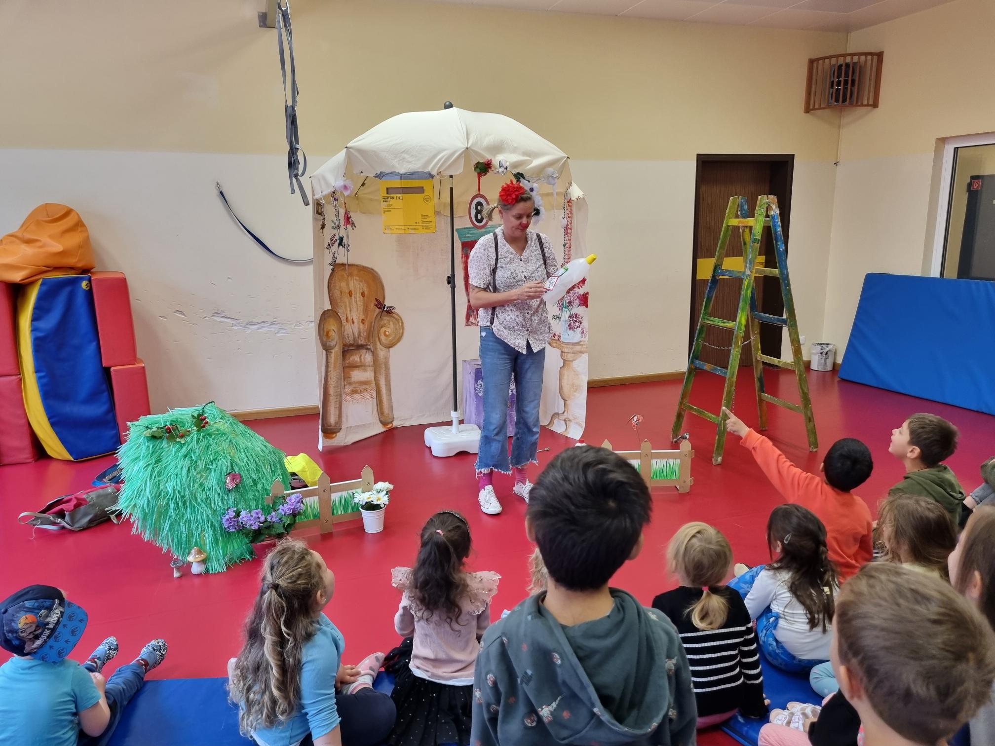 Heute war ein ganz besonderer Tag im Kindergarten: Clown Rosi war zu Besuch und brachte mit ihrem Theaterstück „Rosi passt auf!“ jede Menge Spaß und wichtige Botschaften mit! In einem bunten, kindgerechten Spiel hat sie gemeinsam mit den Kindern die Gefahren des Alltags erkundet – und das auf eine Weise, die zum Lachen, Staunen und Mitmachen einlud.
