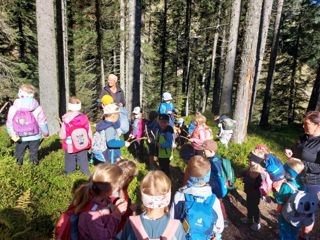 Die Schulanfänger durften sich im Wald einen Gegenstand suchen, mit dem man Musik erzeugen kann.