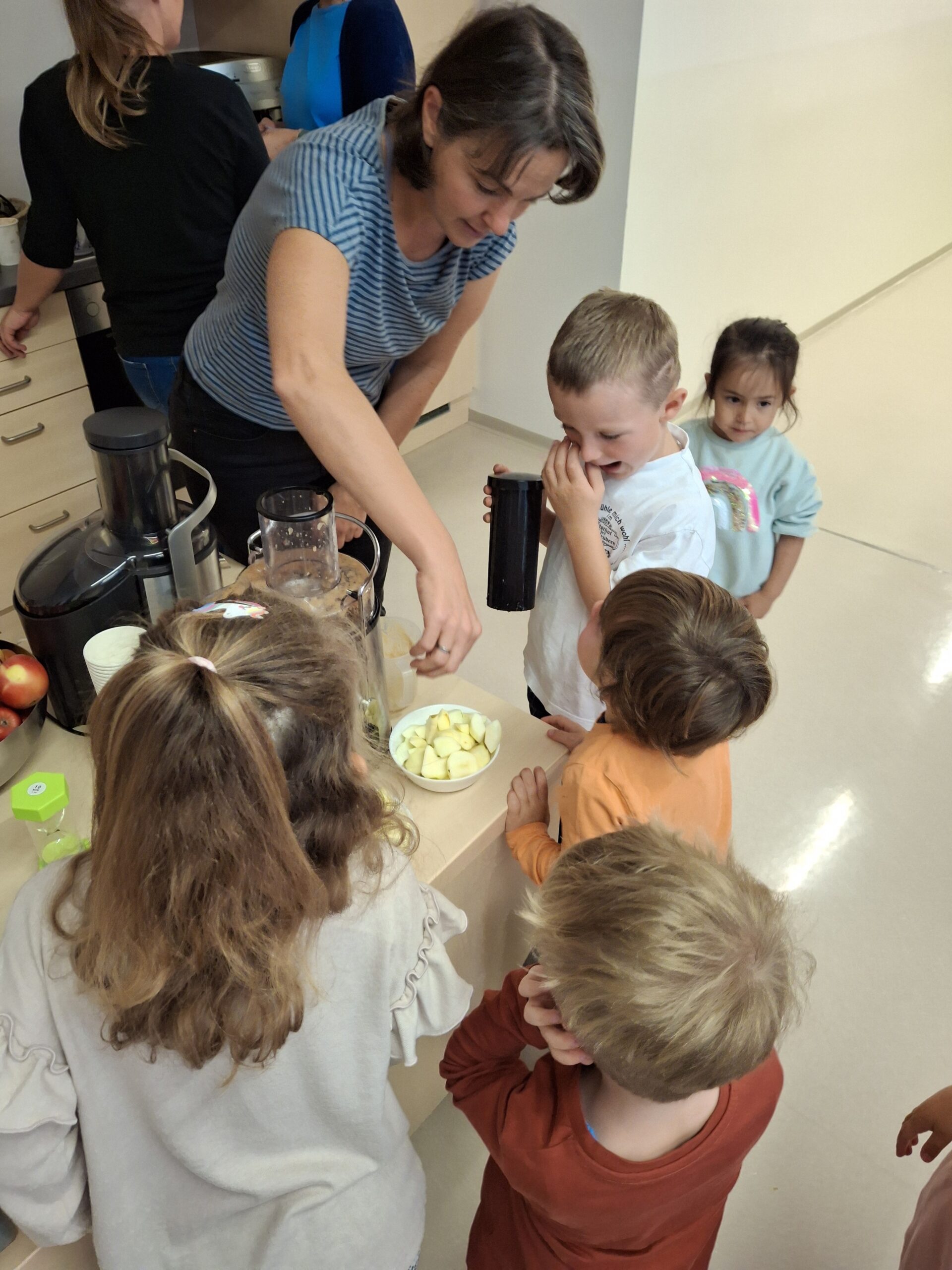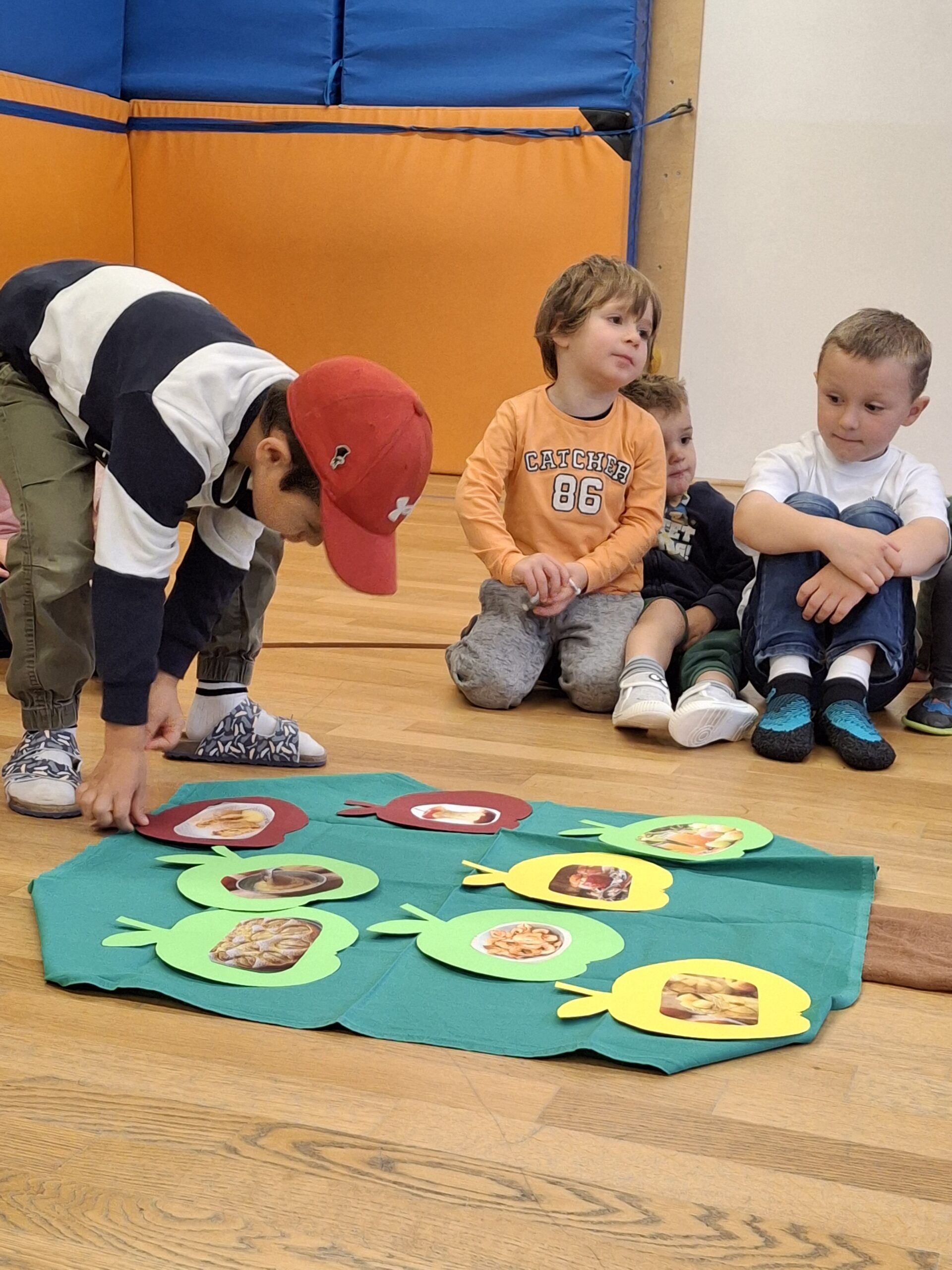Jedes Jahr im November ist Tag des Apfels! Der Apfel ist bei den Kindern immer beliebt als Jause, Nachspeise, verarbeitet oder „pur“. Zwei Mitglieder des Obst- und Gartenbauvereins haben sich bereit erklärt, mit den Kindern im gesunden Kindergarten einen Tag des Apfels zu gestalten. Dazu wurde von mehreren Mitgliedern des Vereins verarbeitete Äpfel als Jause gebracht (Kuchen, Muffins, Apfelsaft, Apfelchips, Apfeltaschen) und die 2 Damen haben sich mehrere Stationen für die Kinder überlegt. Es wurde gemeinsam ein Apfelbaum gelegt, die Kinder durften Bilder gestalten, wie der Apfelbaum im Laufe des Jahres aussieht, sie durften Äpfel schneiden und direkt pressen und Rätsel zum Thema Apfel lösen. Die Kinder haben viel aus diesem Tag mitgenommen und gelernt!