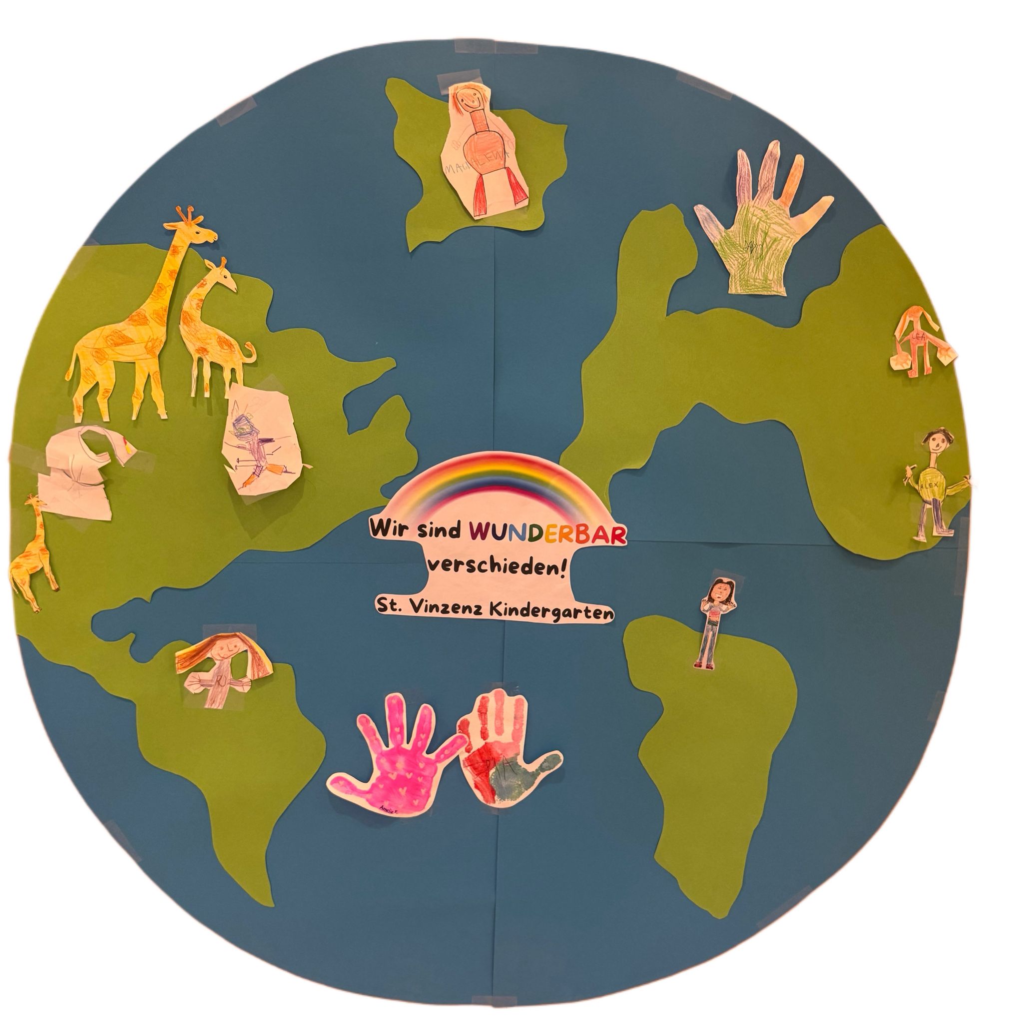 Gemeinsam haben wir im Kindergarten eine Weltkugel gestaltet, die zeigt, wie vielfältig unsere Welt ist – und dass jeder Mensch einzigartig, richtig und wichtig ist. Jedes Kind durfte seinen eigenen Beitrag leisten und so seinen ganz persönlichen Platz auf unserer Erde finden.